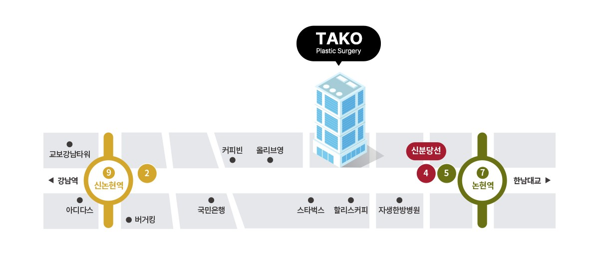 Sinnonhyeon Station, Exit 2 – 5 minutes on foot (Line 9 , Shinbundang Line)